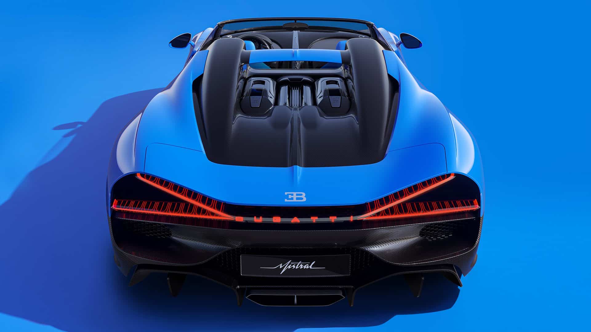 Bugatti W16 güç aktarma organlarının son kez kullanıldığı Mistral Roadster modelini tanıttı. Özel el işçiliği ile üretilen model sadece 99 adet üretiliyor. Bugatti Mistral Roadster modeli için “Türünün Sonu” sloganını kullanıyor. Tavansız olarak üretilen Bugatti Mistral, 1600 PS W16 Quad-Turbo ile baş döndürücü yüksek hızlar sunuyor.